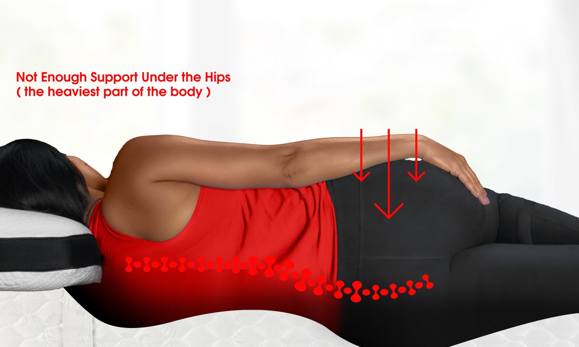 The hips are the heaviest part of the body, they sink into mattresses that don't have additional support in the center where you need it. This leads to improper spinal alignment which results in morning aches and soreness that last into the day.